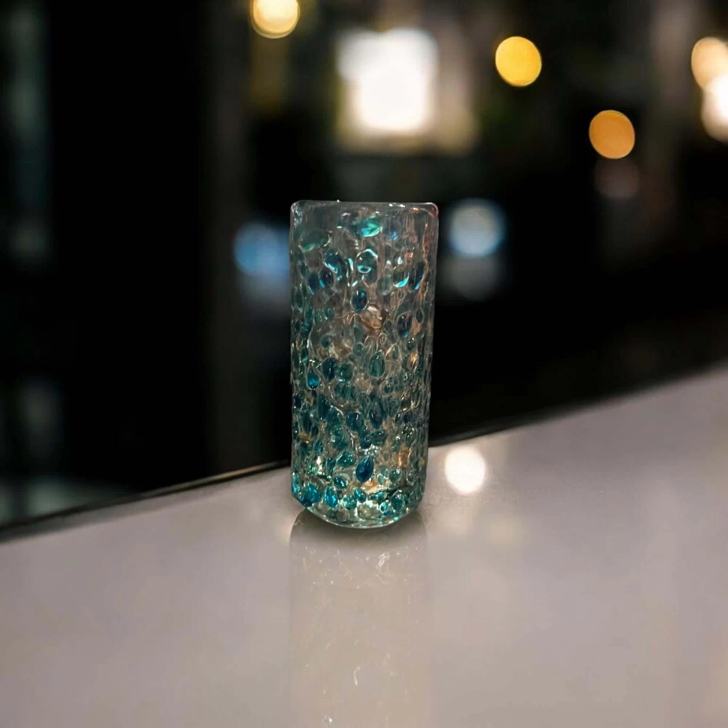 Add a splash of color to your gatherings with our Artisanal Teal Confetti Double Shot Glass, handmade by skilled artisans in Mexico. This unique piece combines traditional craftsmanship with a vibrant, confetti-inspired design, perfect for adding a touch of charm to your table setting.