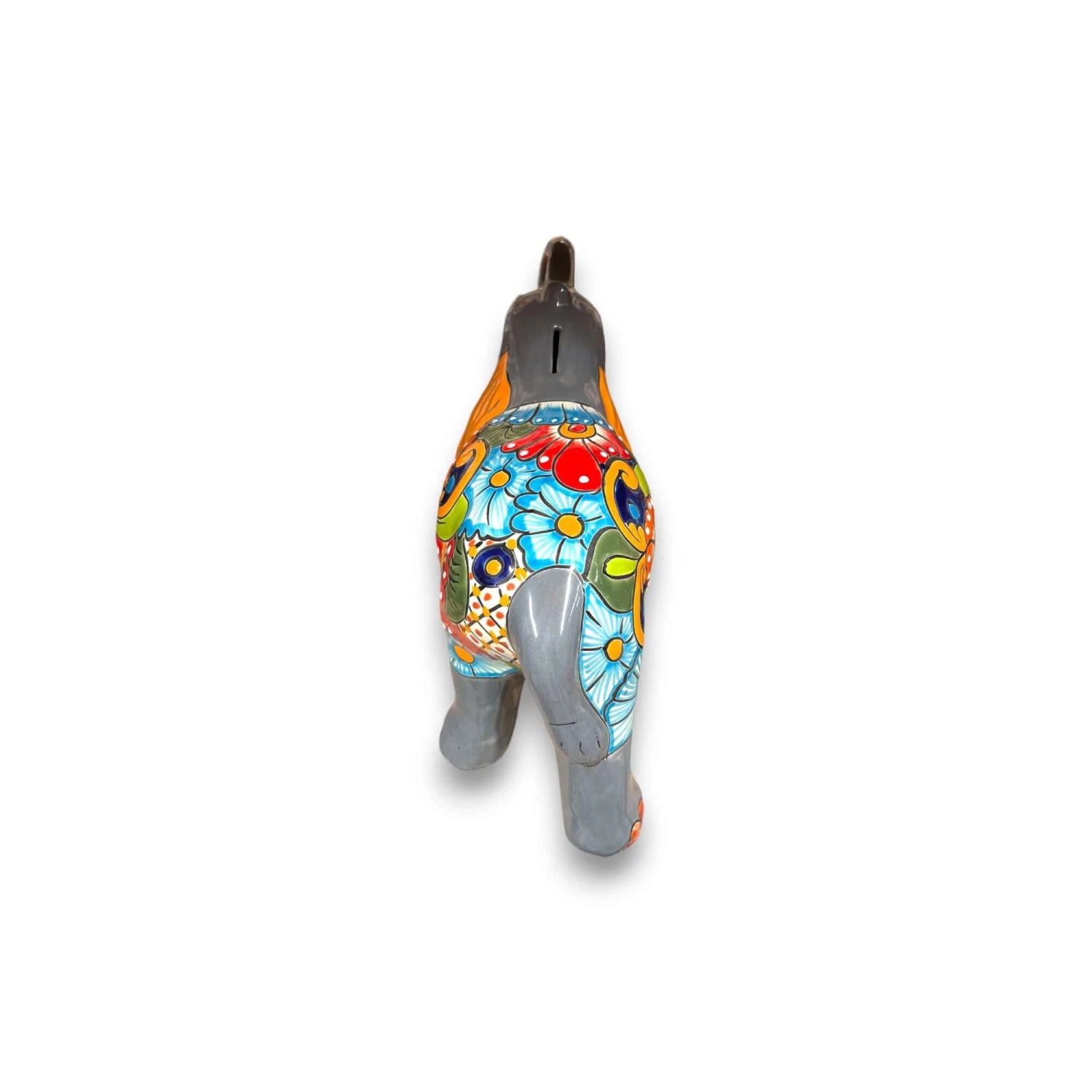 STYLE: Our Colorful Talavera Elephant Shaped Piggy Banks are expertly crafted in the tradition of Talavera pottery, showcasing the intricate designs and brilliant hues that make them truly captivating. Each bank is a miniature masterpiece, celebrating the artistry of skilled artisans.