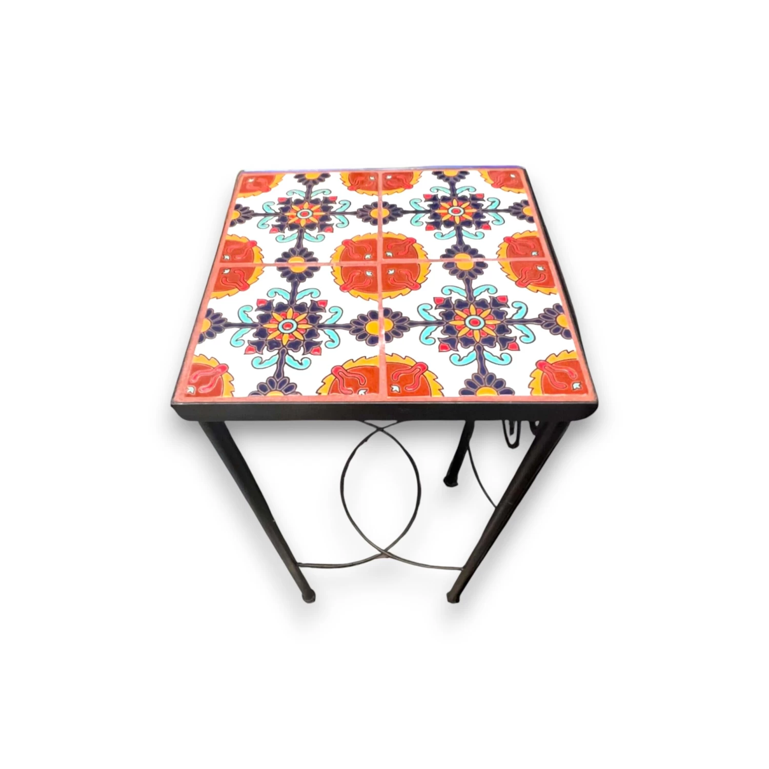 STYLE: The tabletop is made from four hand-painted Talavera tiles set into a metal frame. Each tile showcases intricate patterns in bold, traditional colors. Best of all, you get to choose your tile design, making this table one-of-a-kind to match your space or style.