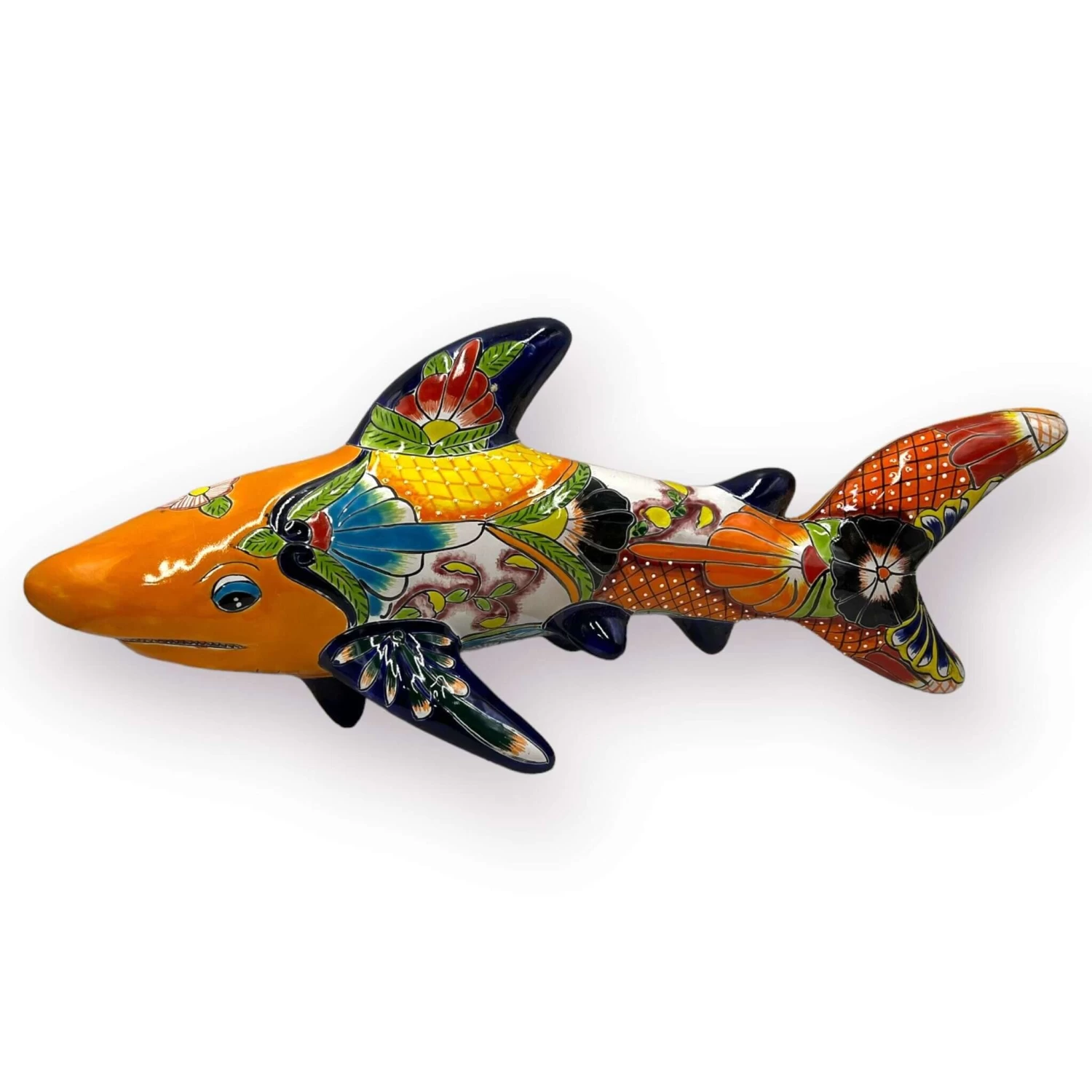 STYLE: This Talavera Shark showcases the vibrant colors and intricate patterns of traditional Mexican art. The hand-painted details bring the shark to life, making it a captivating statement piece for your wall.