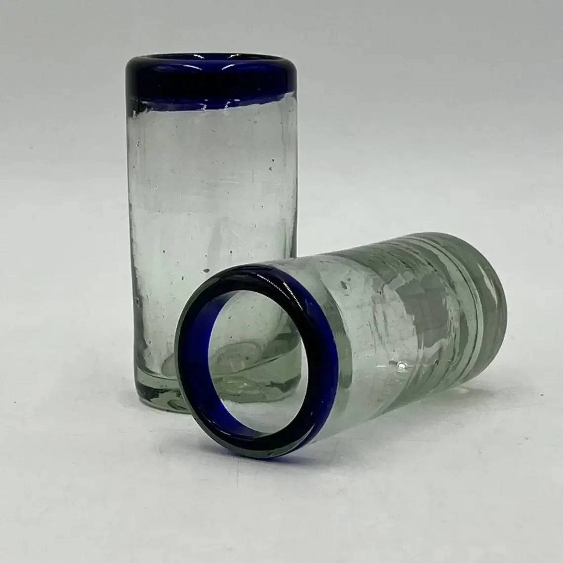 Add timeless charm to your barware with this Hand-Blown Blue Rim Shot Glass, crafted by skilled artisans in Mexico. Its thick glass walls and classic cobalt rim make it perfect for tequila, mezcal, or any celebratory pour.