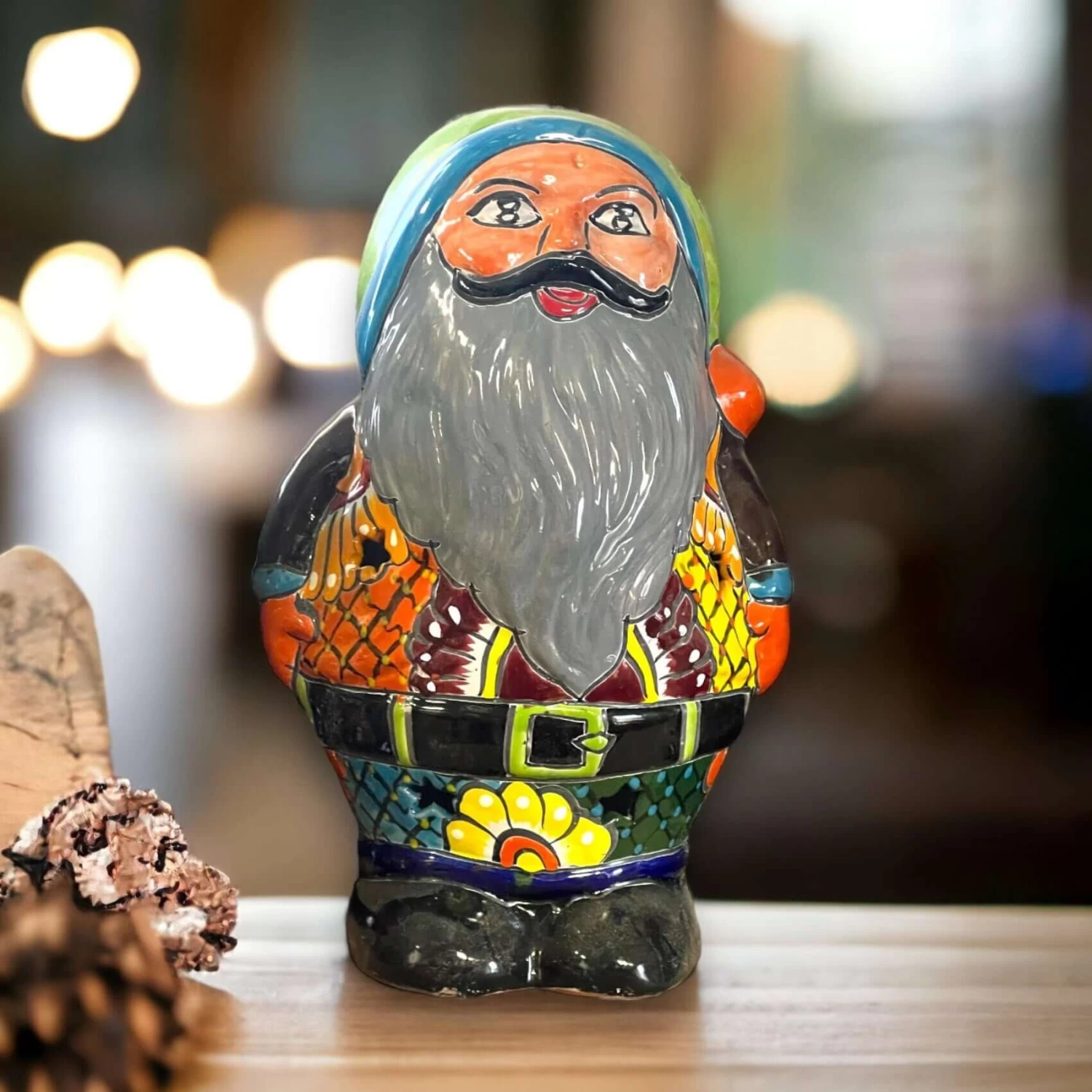 STYLE: Crafted in the traditional Talavera style, these Santa statues are full of character and vibrant colors, making them a standout addition to your Christmas decorations.