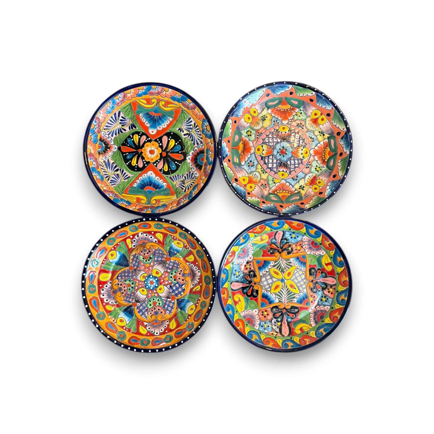 It includes: (4) 11.5″ plates, (4) 8″ plates, and (4) 5.5″ bowls. Each piece showcasing the iconic patterns that define Talavera craftsmanship.