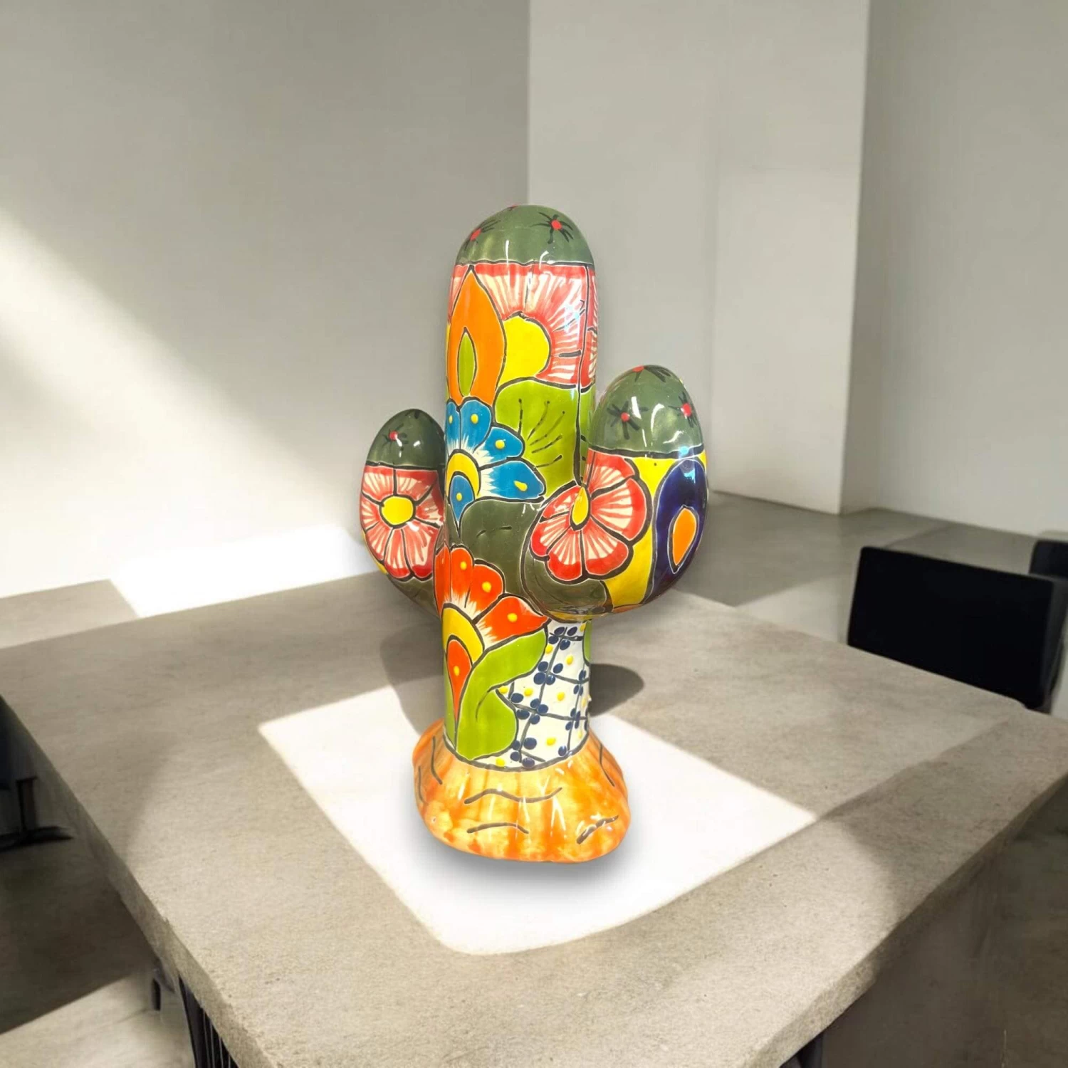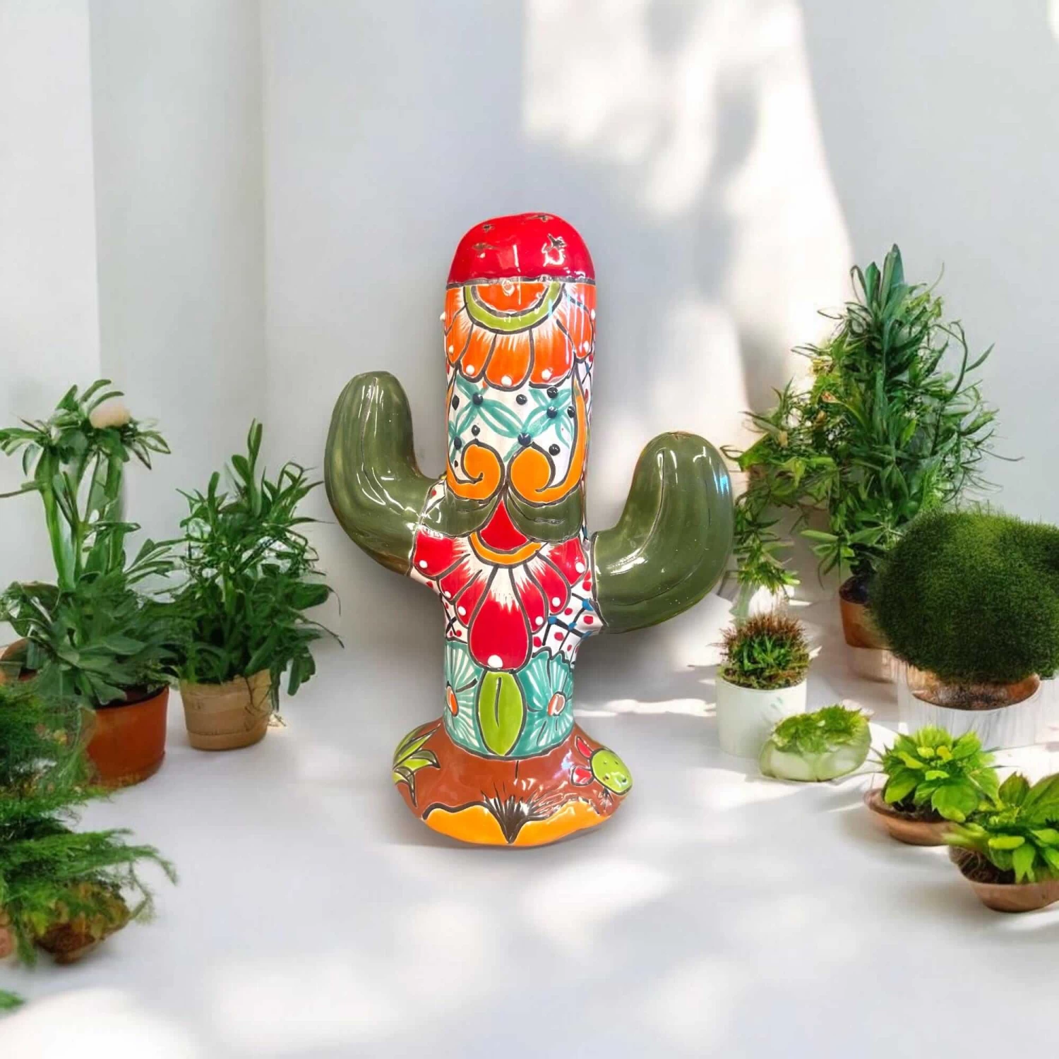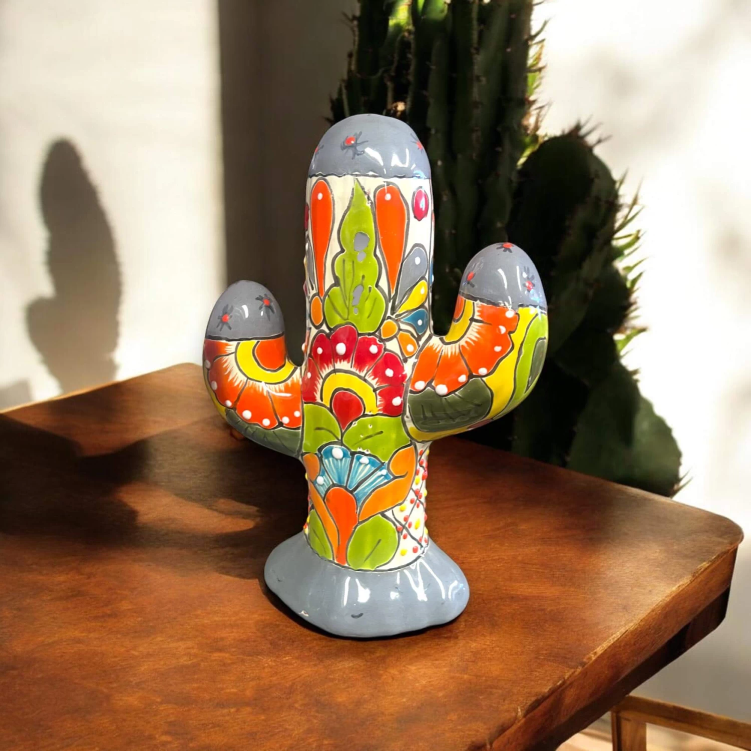 Add a touch of vibrant Mexican culture to your home with this beautiful handmade Talavera Cactus Statue. Each piece is crafted with care by skilled artisans in Mexico, showcasing bold, colorful designs that will brighten any space!