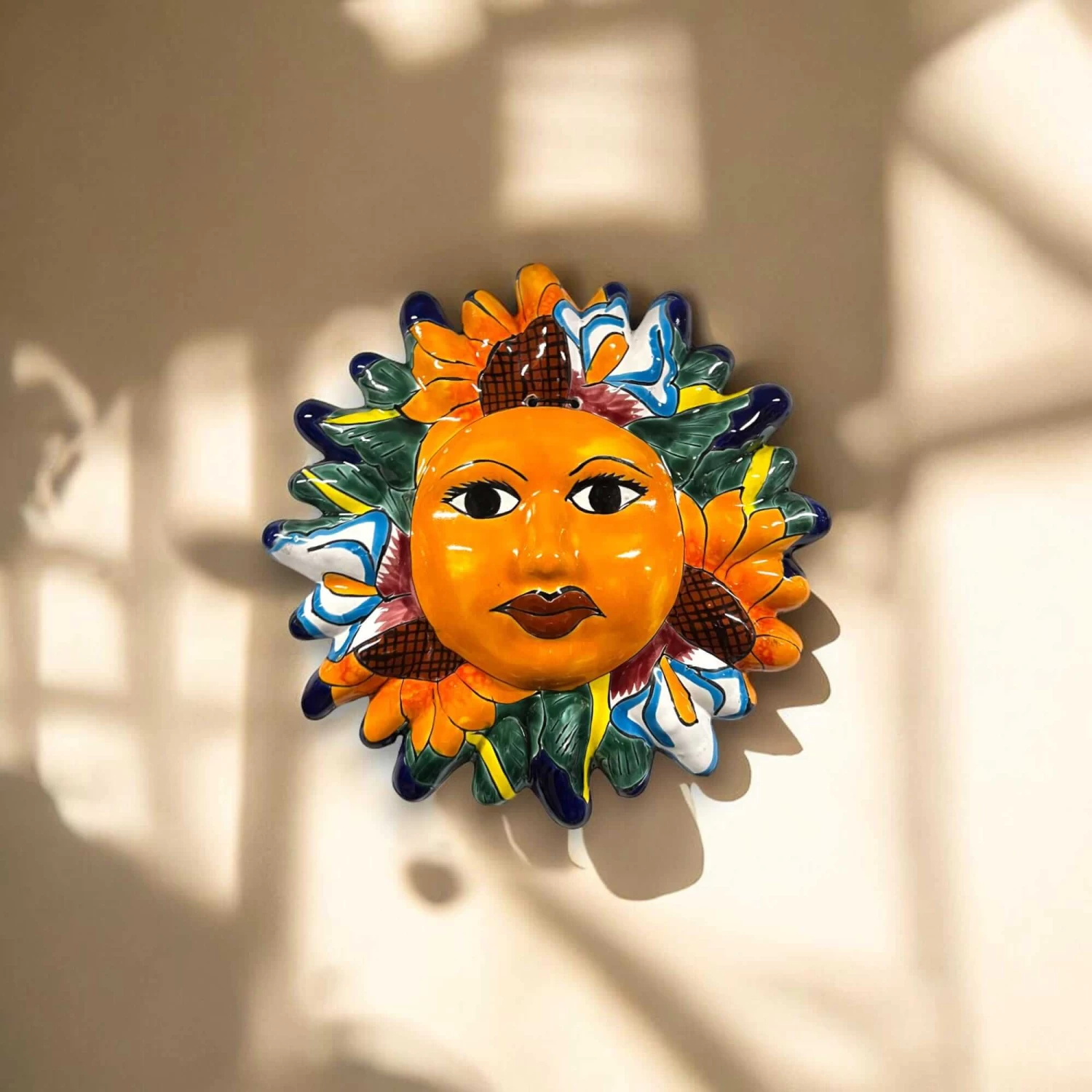 Beautiful Handmade Talavera Sun Wall Art, crafted by skilled artisans in Mexico. This vibrant, hand-painted sunflower decor will brighten up any space in your home!