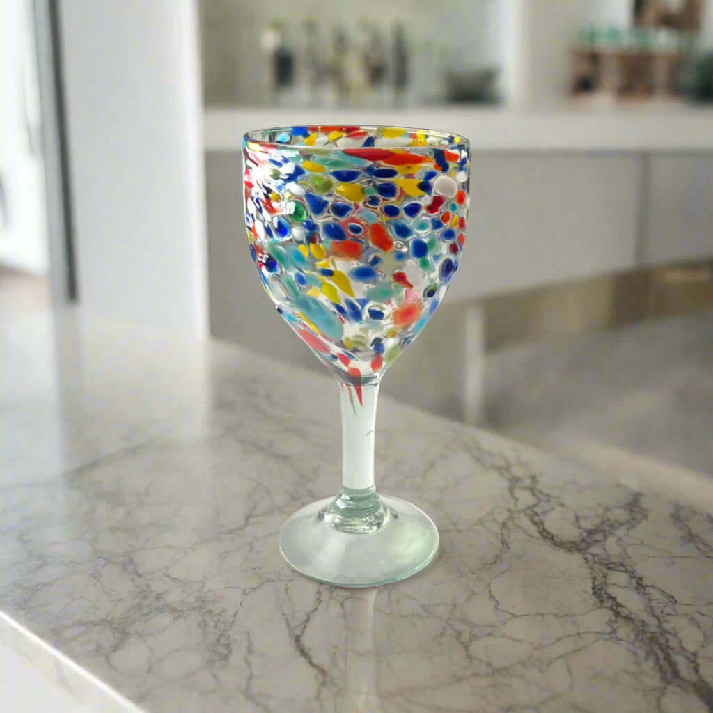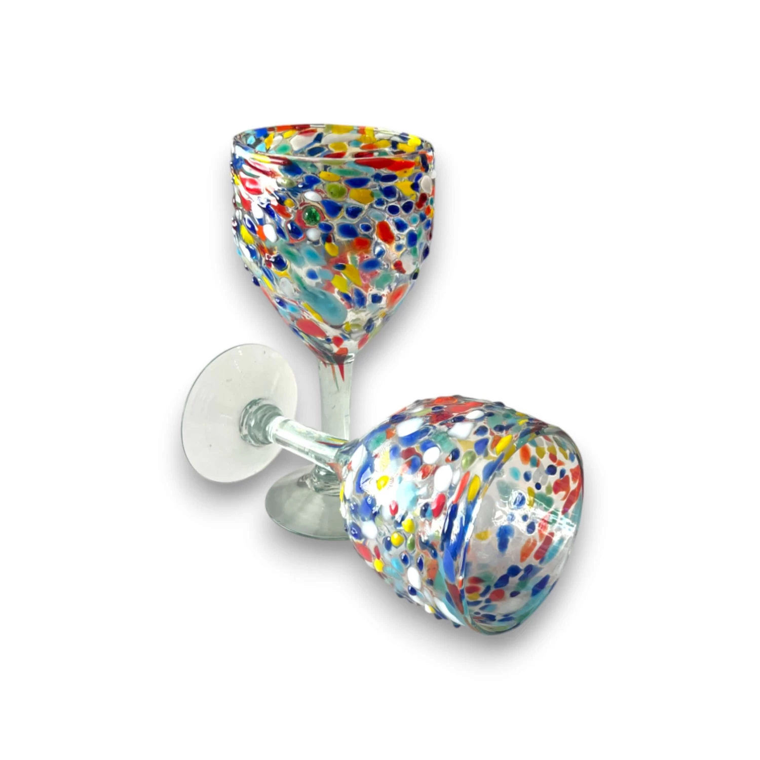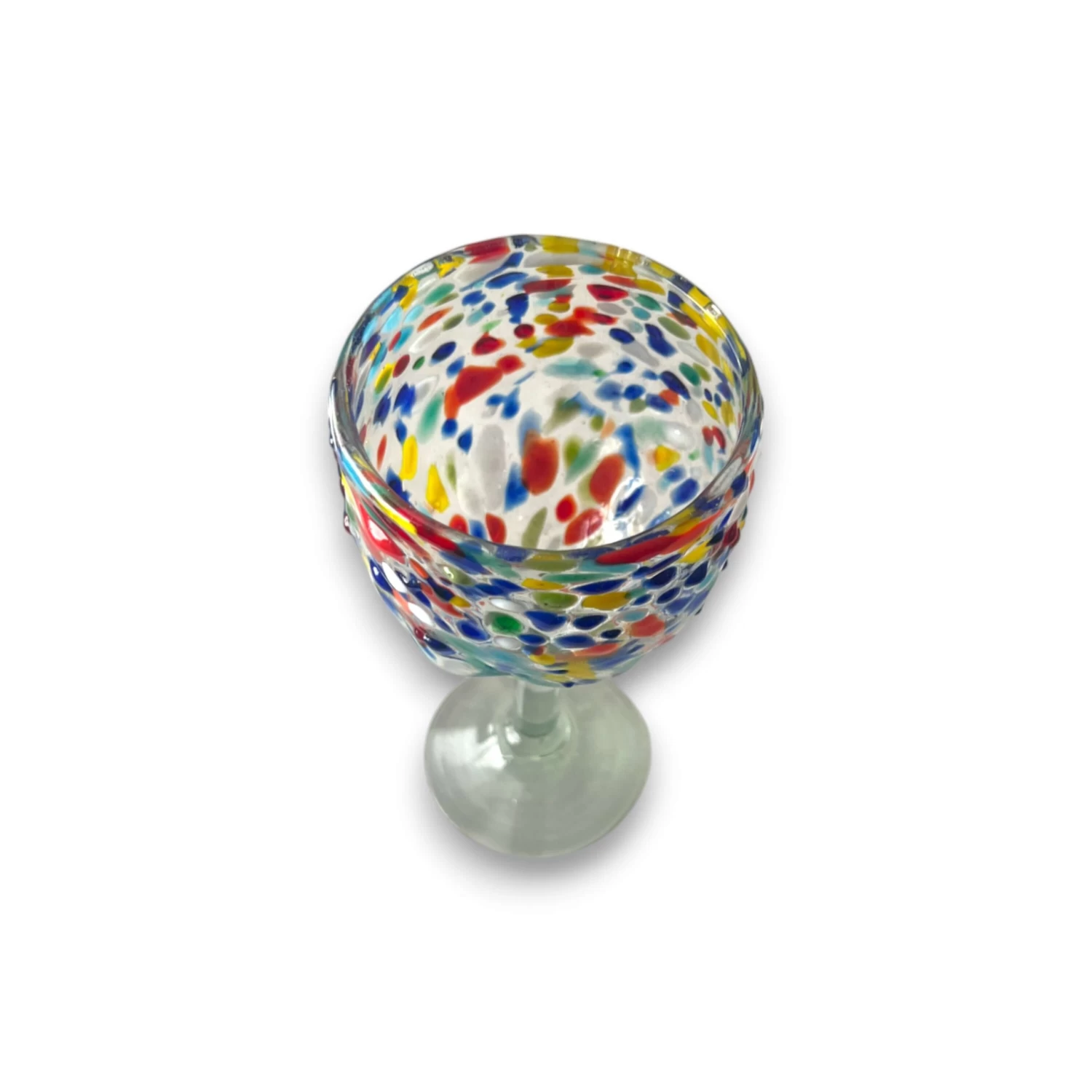 Welcome to our vibrant collection of handcrafted Mexican glassware! This beautiful Confetti Rock Wine Glass features a playful, hand-blown confetti design that brings charm and color to any occasion.