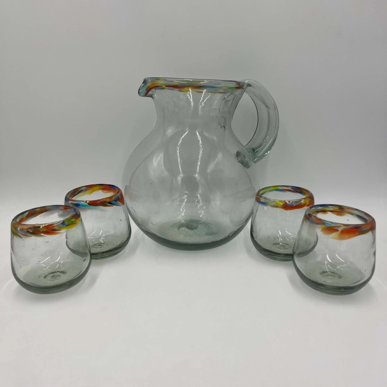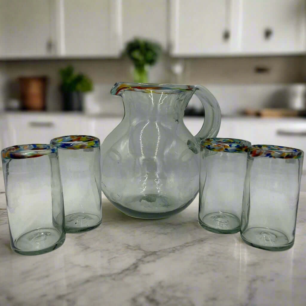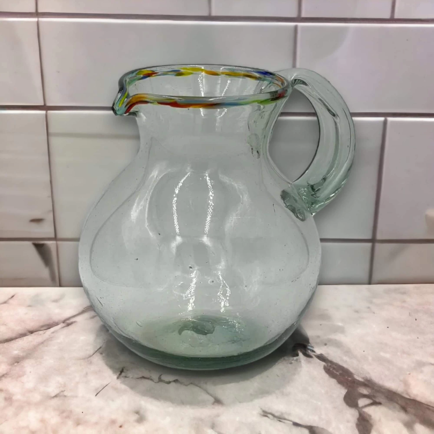 Welcome to our shop, where vibrant Mexican craftsmanship meets home decor! Explore our collection of beautiful hand-blown glass pitchers, each lovingly created by skilled artisans in Mexico. Add a touch of festive charm to your home with these unique pieces.