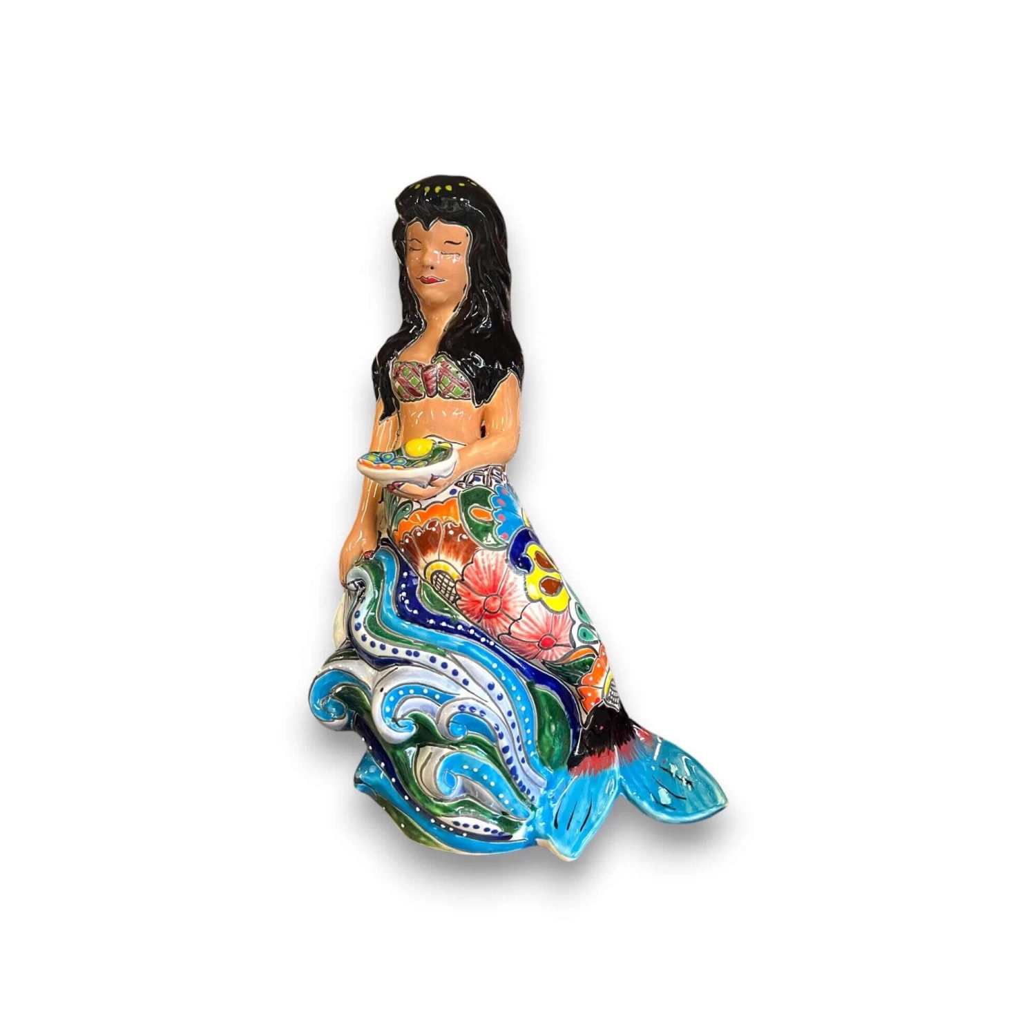 STYLE: Dive into the beauty of Mexican Talavera craftsmanship with our mermaid statue, lovingly created by talented artisans.