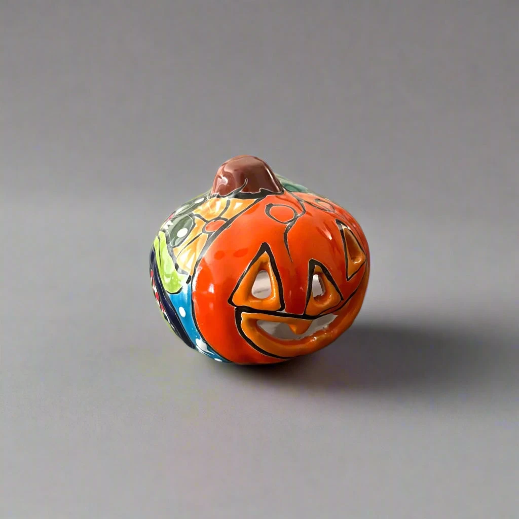 Add festive color and charm to your space with this Mini Talavera Pumpkin. Handcrafted by skilled artisans in Mexico, this cheerful ceramic jack-o’-lantern blends traditional Mexican artistry with Halloween whimsy.