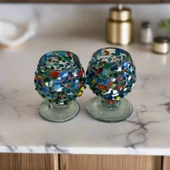 Handmade Double Shot Glass | Artisanal Confetti Rim Design