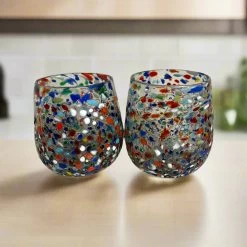 Confetti Stemless Wine Glass | Hand-Blown Mexican Pebbled Cup