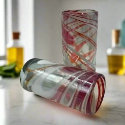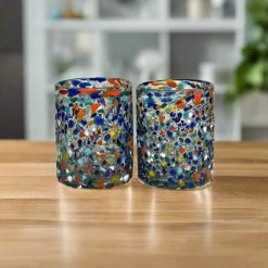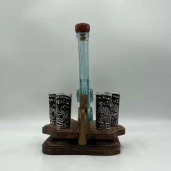Handblown Mexican Shot Glass And Tequila Set With Wagon Decanter | Solid Wood
