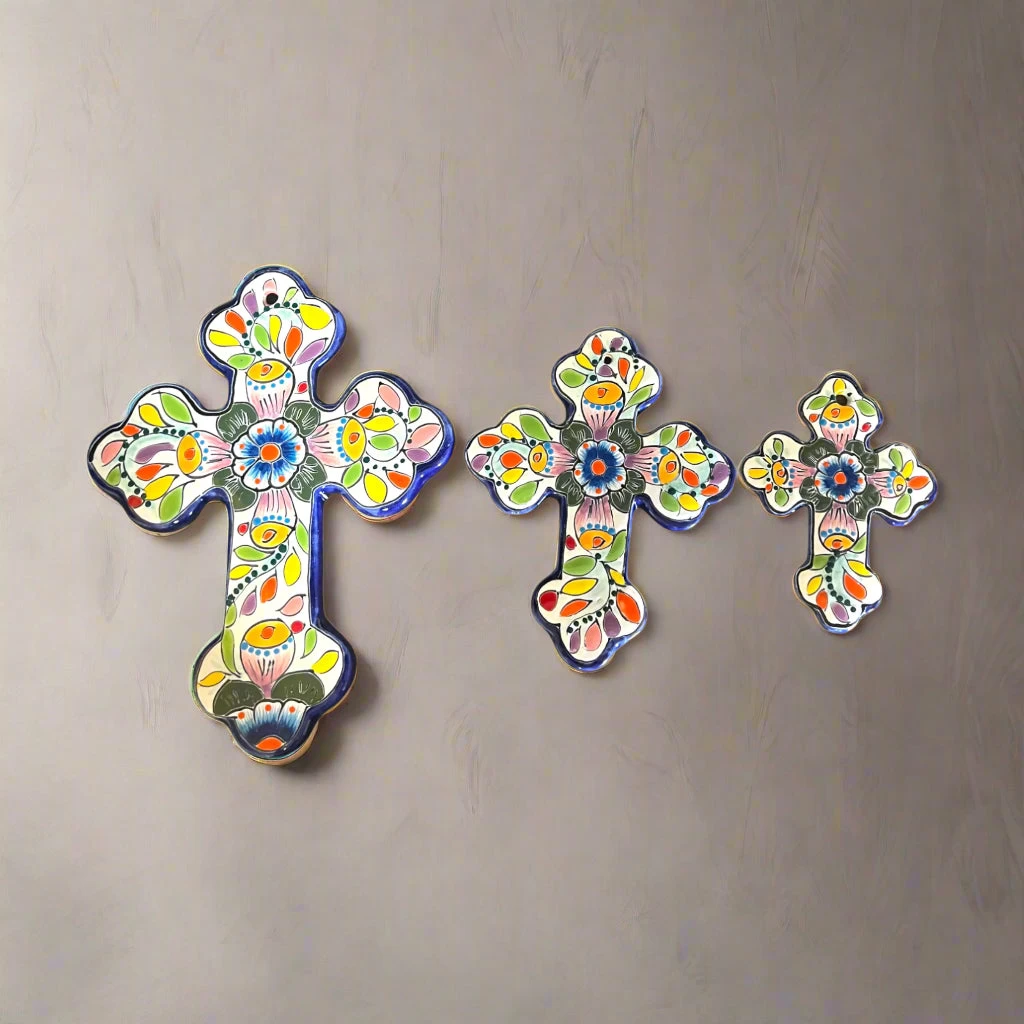 STYLE: Each cross features classic Talavera floral patterns in bright, cheerful colors — from yellow and green to bold orange and deep blue. Their hand-painted designs and glossy finish bring warmth and authenticity to any decor.