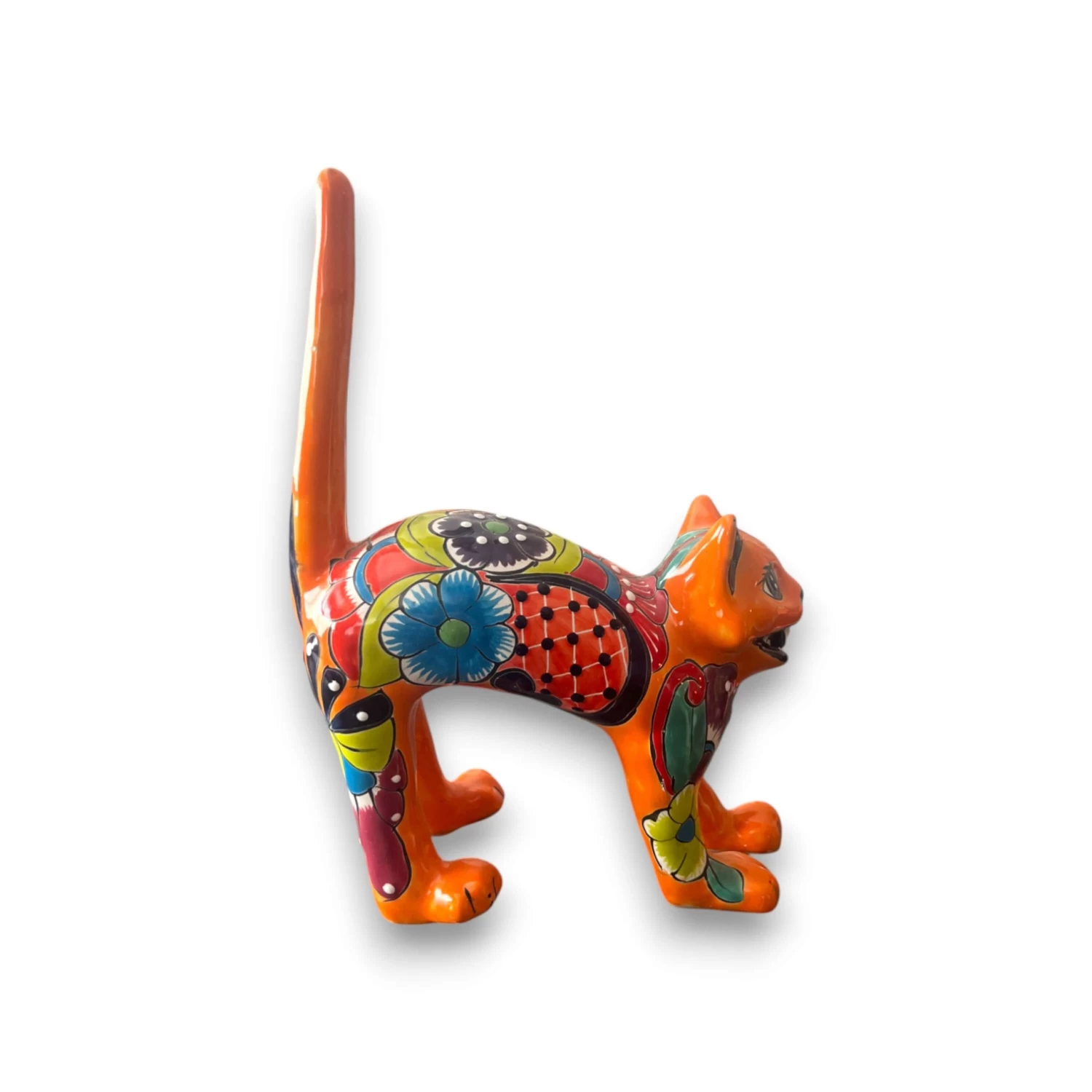 Welcome to our vibrant collection of handmade Talavera pottery! This eye-catching Talavera Arched Cat Statue is full of personality and charm. Featuring bold floral patterns and vivid colors, this “scared cat” is the perfect decorative piece for cat lovers, Halloween decor, or anyone who appreciates playful Mexican folk art.