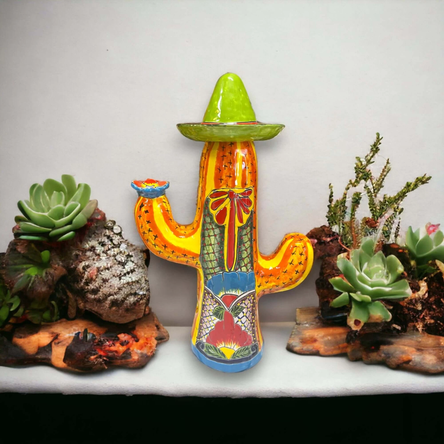 Welcome to our vibrant world of Mexican artistry! Discover the charm of our handmade Talavera Cactus with Sombrero Statue, a colorful cultural masterpiece crafted by skilled artisans. Each piece is a celebration of Mexican heritage and will infuse your space with its lively spirit.