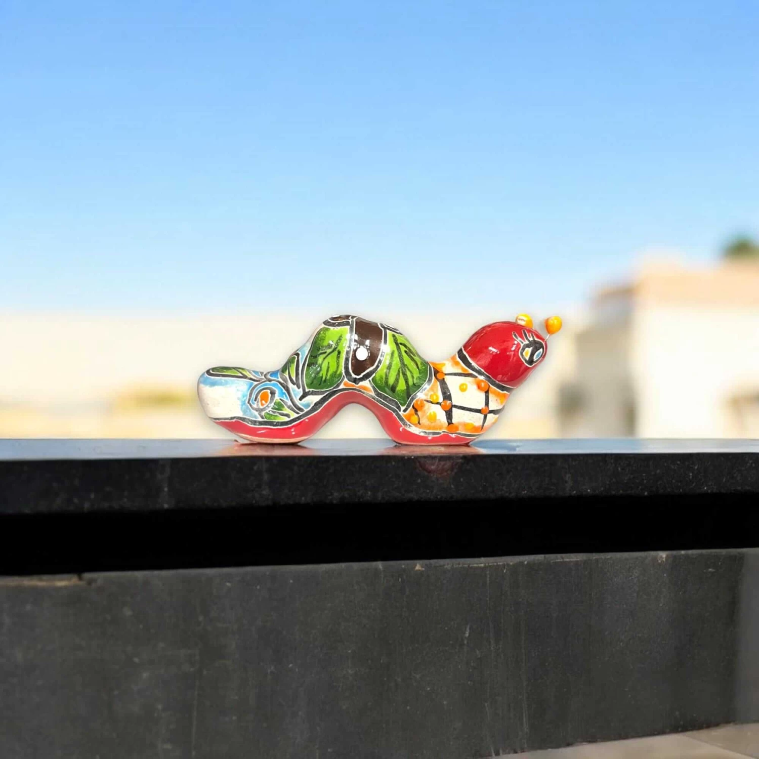 Add a touch of playful charm to your decor with this Talavera Caterpillar Figurine. Handcrafted by talented artisans in Mexico, this delightful piece blends cheerful design with vibrant folk art tradition — perfect for desks, windowsills, or gifting.