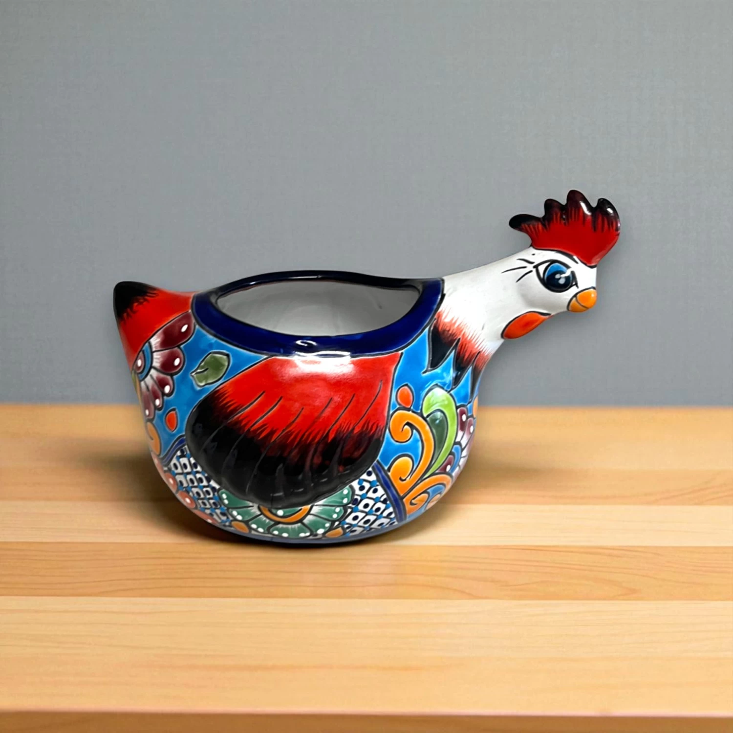 Brighten your space with this charming Talavera Chicken Planter, a perfect blend of traditional Mexican folk art and functional decor.