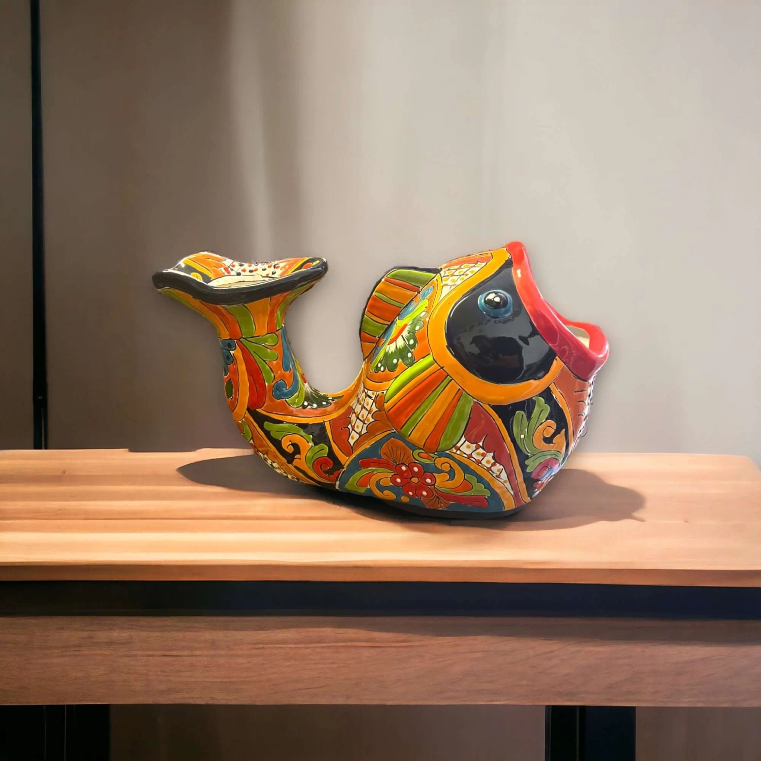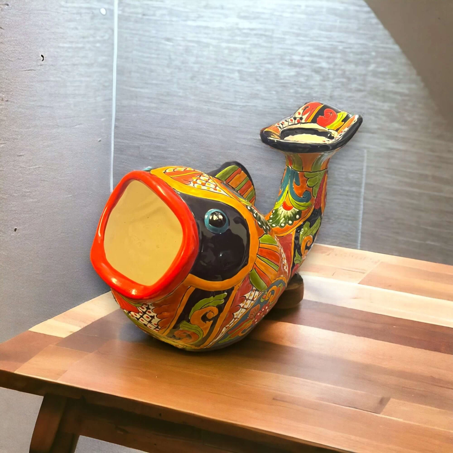 Transform your home or garden with our beautiful Handmade Talavera Fish Planter, crafted by skilled artisans in Mexico. This vibrant piece of Mexican artwork will bring a splash of color and charm to any space!