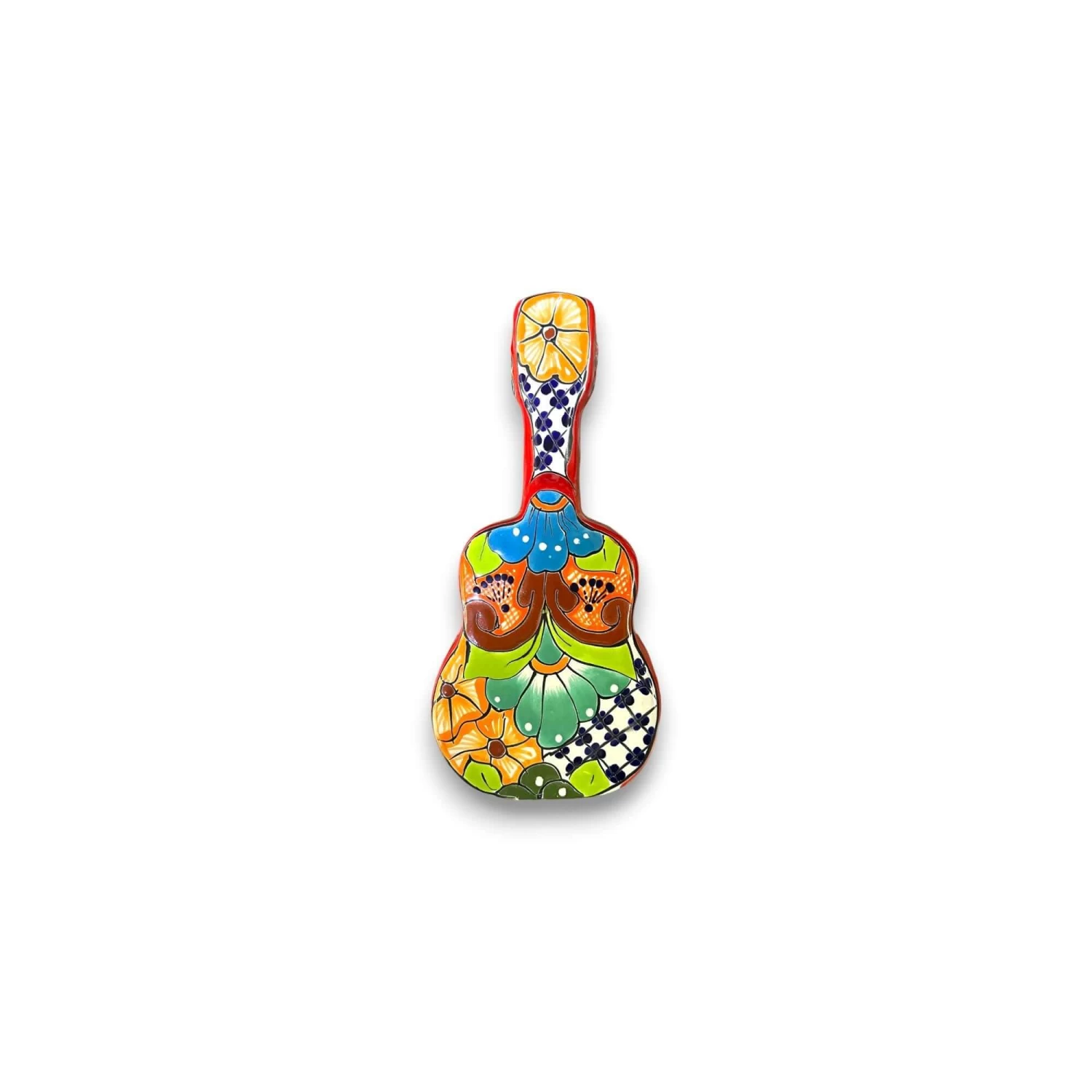 Add musical flair to your home with this Talavera Guitar Statue. Handcrafted by skilled artisans in Mexico, this decorative piece blends the spirit of music with the rich tradition of Mexican folk art — a perfect conversation starter for music lovers and collectors alike.