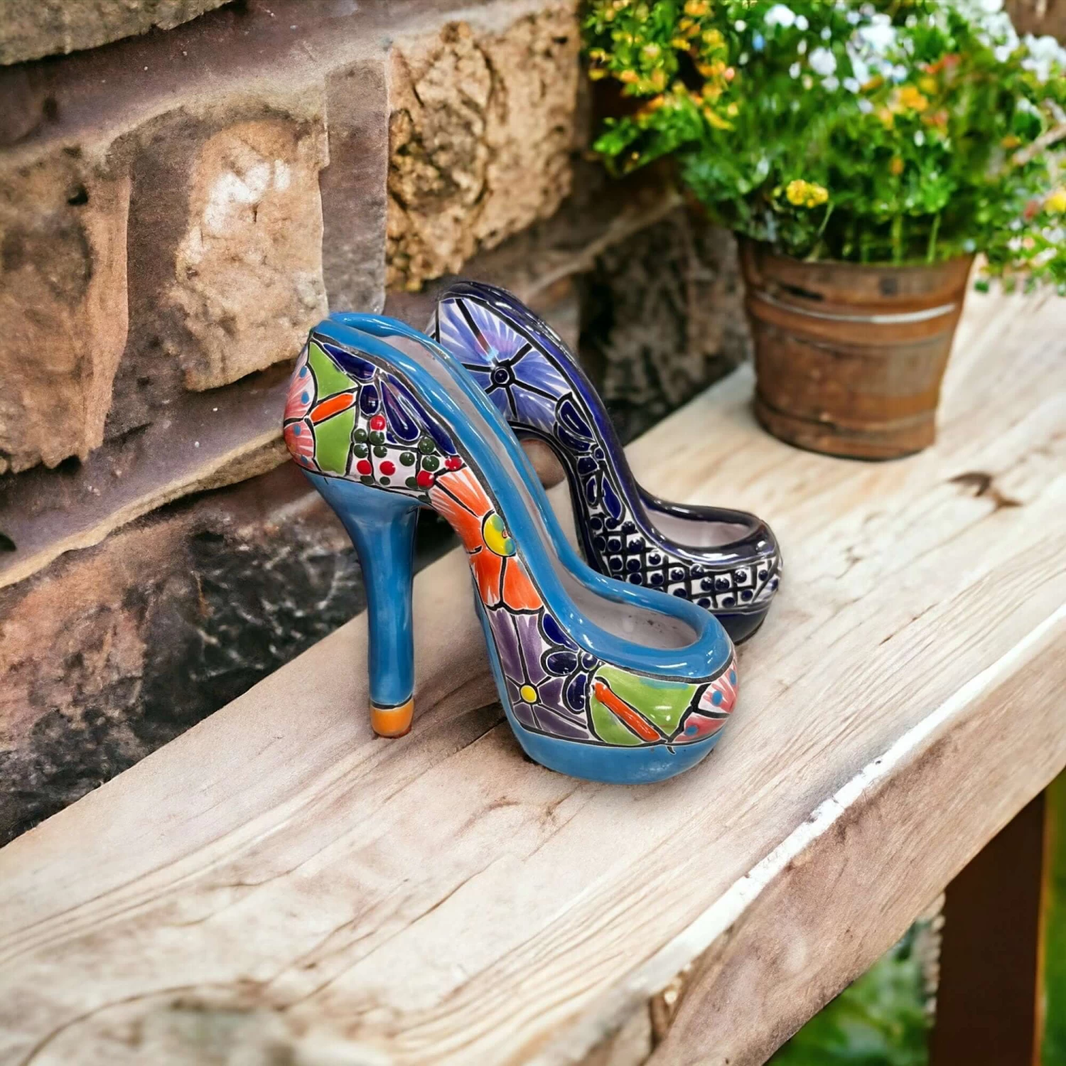 STYLE: Designed in the shape of a stylish high heel and hand-painted in classic Talavera patterns. Each one is bursting with color and floral details—perfect for fashionistas, collectors, or anyone looking to add flair to a shelf or vanity.