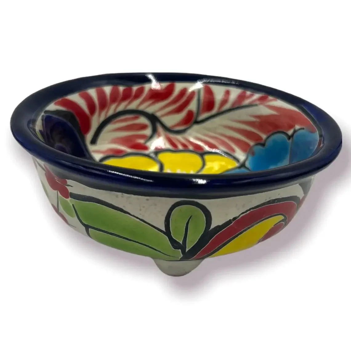 STYLE: This vibrant ceramic bowl features bold, hand-painted floral and dotted patterns in traditional Talavera style. Its cobalt blue rim adds a clean, finished look, while the interior bursts with color and detail.