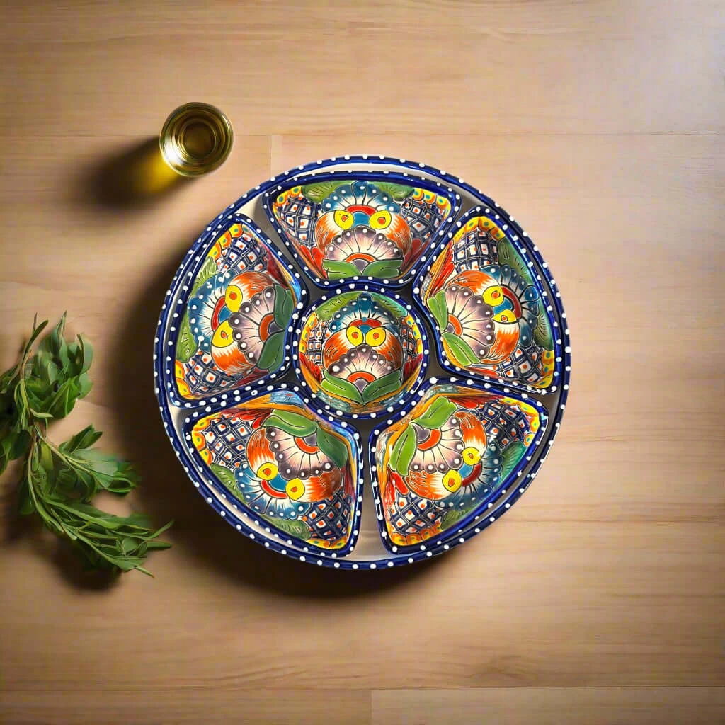 Add a festive flair to your next gathering with this colorful Talavera Sectional Appetizer Tray, handcrafted by skilled artisans in Mexico. Showcasing bold designs and lively hues, it captures the essence of traditional Mexican pottery!