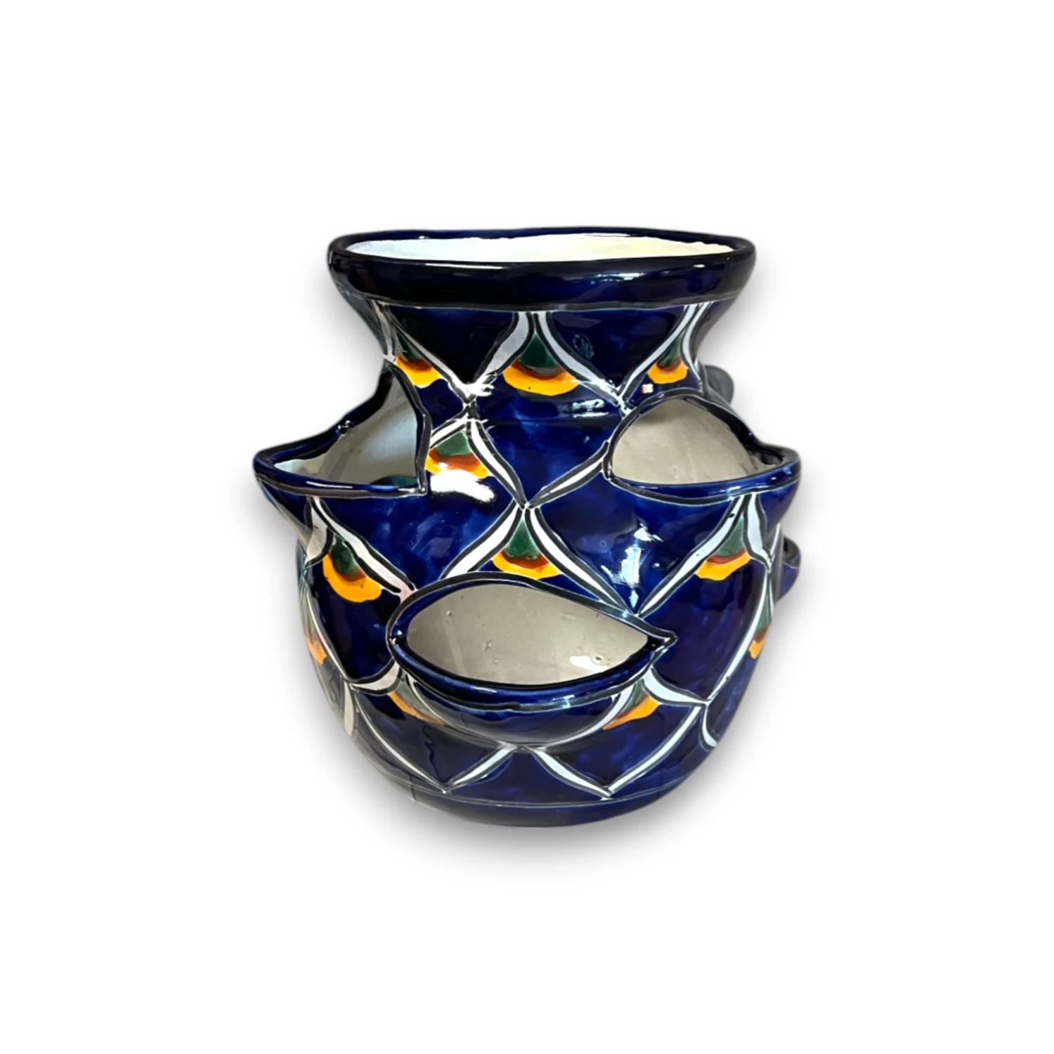 Add charm and heritage to your garden with this Talavera strawberry planter. Handcrafted by skilled artisans in Mexico, this planter features multiple side pockets perfect for growing herbs, strawberries, or succulents while showcasing a traditional blue peacock-inspired design.