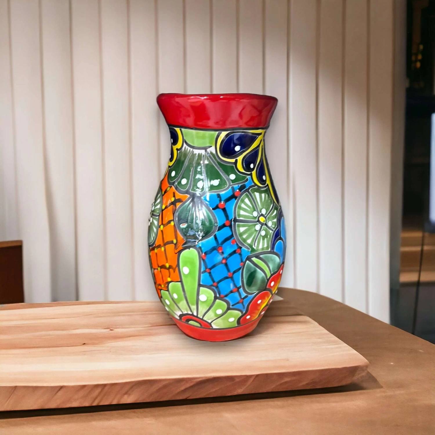 Indulge in the beauty of authentic craftsmanship with our Colorful Hand-Painted Talavera Vase. Each piece is meticulously crafted by skilled artisans in Mexico, bringing a touch of traditional charm to your home decor.