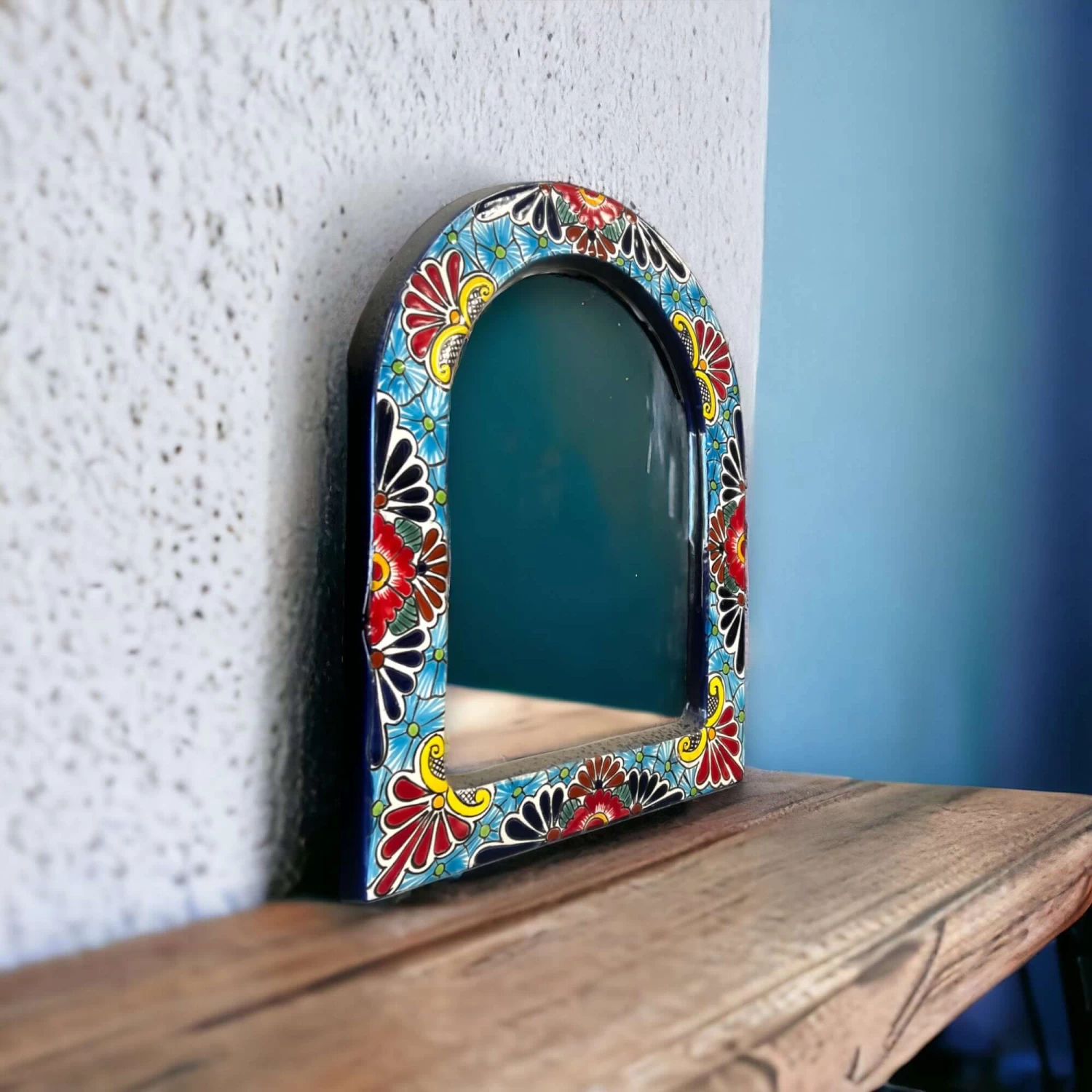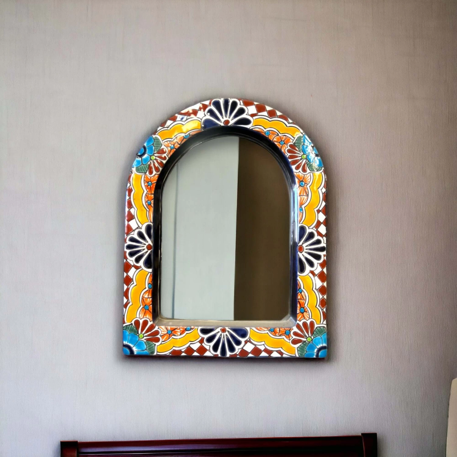 Welcome to our colorful world of artisan-crafted treasures! Dive into the vibrant charm of Mexico with our stunning hand-painted Talavera Mirror Wall Art. Each piece is lovingly crafted by skilled artisans, bringing a touch of authentic Mexican flair to your home.